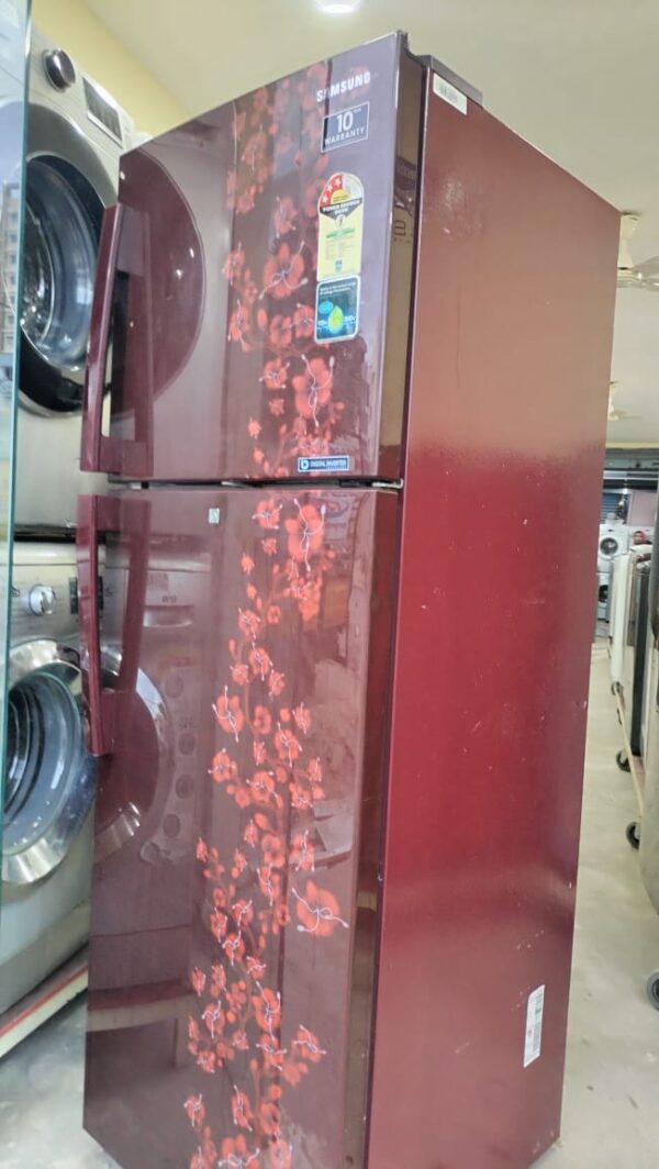 Samsung 280 ltr Refrigerator Inverter Model Double Door With Brown Color and Flower Design